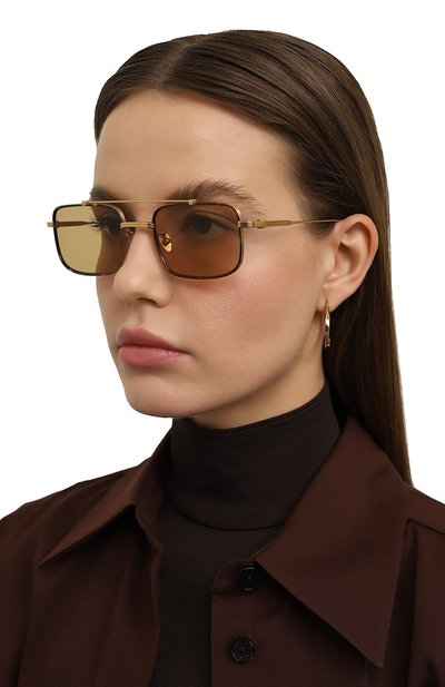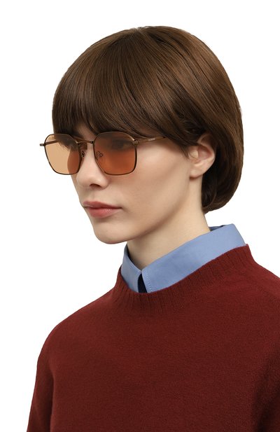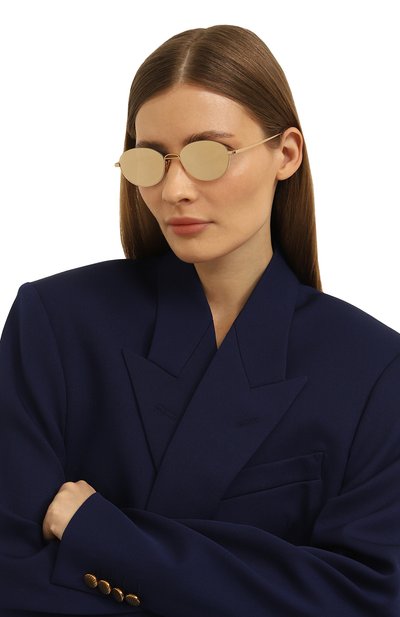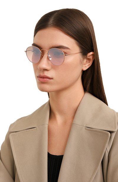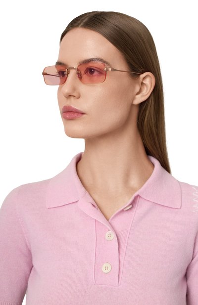 Эти круглые очки с рельефным узором не только защитят глаза от вредных ультрафиолетовых лучей, но и позволят увидеть окружающий мир в розовом цвете. Аксессуар с градиентными нейлоновыми линзами такого романтичного оттенка изготовлен из легкого металла. На узких дужках ‒ заушники из полупрозрачного ацетата.
