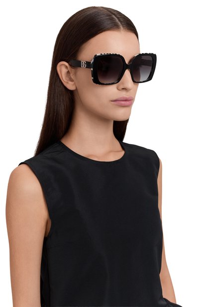 Черные солнцезащитные очки — классический вариант для лета, однако модель с фирменной монограммой на дужках не выглядит слишком просто. За правильное настроение отвечают широкая оправа и квадратные градиентные линзы. Аксессуар, отражающий 100% ультрафиолетовых лучей, выполнили из прочного глянцевого ацетата.