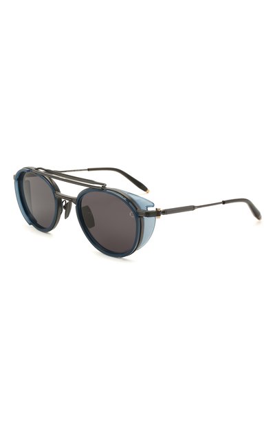 Создавая небольшие круглые очки, представленные эксклюзивно в ЦУМе, дизайнеры марки продумали каждую деталь аксессуара. Тонкую темную оправу выполнили из легкого ультрапрочного титана, а яркие акценты расставили при помощи голубых фигурных шор и такого же цвета вставках на рамках. Однотонные темно-серые линзы из устойчивого к царапинам поликарбоната, обеспечивают 100% защиты от УФ-лучей, не искажая оттенки.