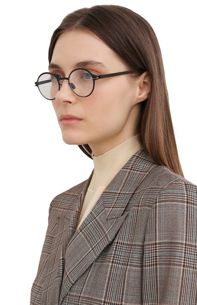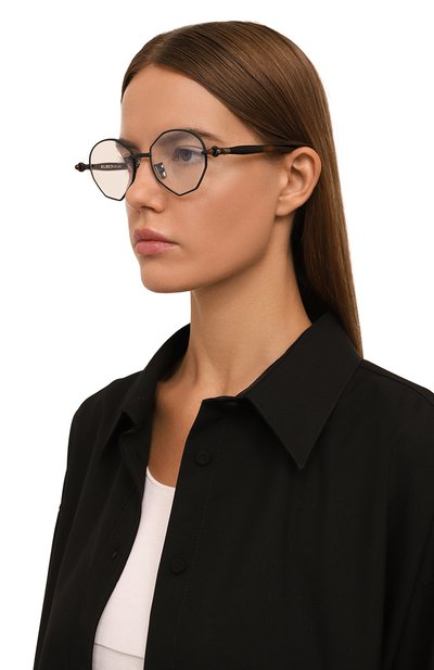 Тонкая овальная оправа с запатентованными спиральными шарнирами выполнена из знаковой для бренда нержавеющей стали бронзового оттенка. Ей аккомпанирует гладкий ацетат: черный на рамке и черепаховый на заушниках. Такая комбинация позволила модели оставаться прочной, но при этом очень легкой.