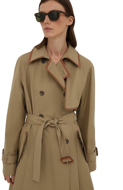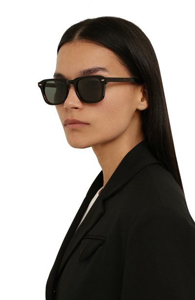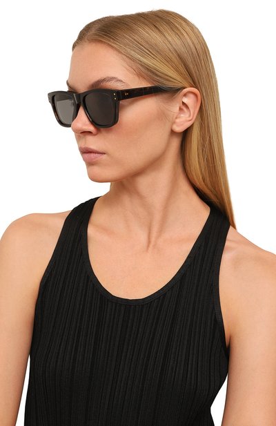 В солнцезащитных очках поставили знак равенства между красотой и функциональностью. Круглую оправу выполнили из ацетата с древесным узором кофейного цвета, а темно-зеленые линзы – из минерального стекла по технологии G-15. Модель блокирует 100% ультрафиолетовых и инфракрасных лучей и поглощает 85% видимого света, но при этом картинка остается четкой.