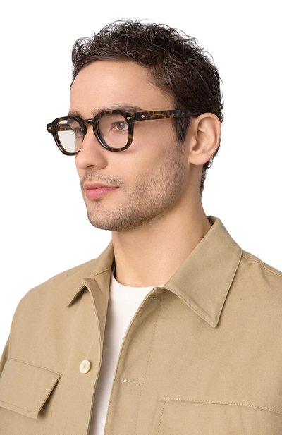 Очки с круглой коричневой оправой даже самый простой образ сделают более эстетским. Для изготовления модели с черепаховым мотивом использовали прочный ацетат. Такой материал считается особенно легким, поэтому аксессуар практически не ощущается на лице даже при долгом ношении.