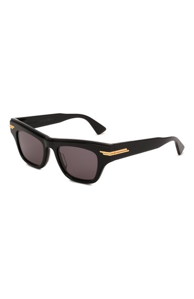 Очки из легкого, но прочного ацетата заслужат звание универсального аксессуара. На это работают черный цвет и лаконичная прямоугольная форма. Акценты сделали только на местах крепления широких дужек, подчеркнув их позолоченными вставками. Модель с затемненными линзами хорошо приглушает свет и защищает от ультрафиолета.