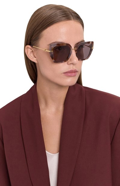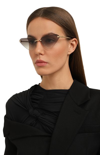 Создавая солнцезащитные очки, особое внимание уделили устойчивому развитию. Например, серые градиентные линзы, защищающие глаза УФ-лучей, выполнили с использованием полимера, производство которого позволяет сократить выбросы CO2 до 50% по сравнению с обычной технологией. Для изготовления полуободкового аксессуара с декором на узких дужках выбрали легкий ювелирный сплав.