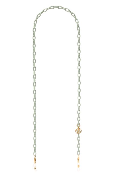 Эта цепочка мятного оттенка доказывает, что команда марки подходит к работе с мельчайшими деталями с той же тщательностью, что и к дизайну. Небольшие звенья из легкого регенерированного ацетата отполированы вручную до идеальной гладкости, а подвеска с LF-монограммой покрыта 22-каратным золотом. Чтобы аксессуар можно было закрепить на дужках любой ширины, пару карабинов дополнили регулируемыми мягкими петлями.