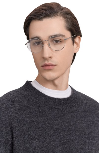 Тонкая лаконичная оправа будет почти незаметна на лице. Мастера марки выполнили аксессуар из легкого серебристого металла, который долго не потемнеет. Модель с прозрачными заушниками из гладкого ацетата декорировали мин иатюрным логотипом на дужках и рифленым микроузором на рамках.