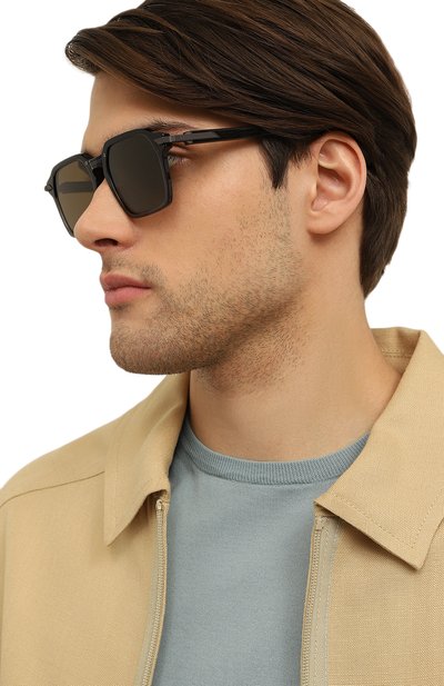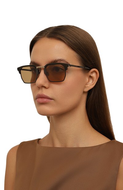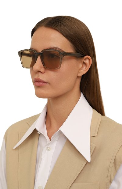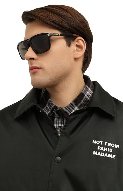 Серые солнцезащитные очки изготовили из прочного легкого титана. Аксессуар с двойным мостом и фигурными накладками на квадратных ободах, вдохновленными работами архитектора Жана Пруве, дополнили золотистыми кантом, трубчатыми винтами и наконечниками заушников. Высококонтрастные линзы из японского ацетата CR-39 с двухслойным антибликовым покрытием защитят глаза от ультрафиолета.