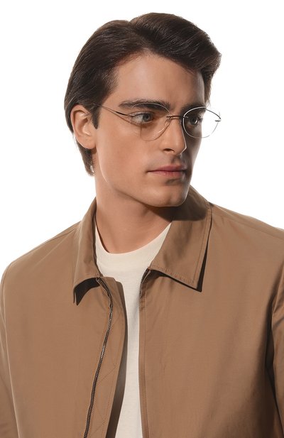 Безободковая оправа с тонким мостом только выглядит хрупкой. На самом деле для изготовления узких дужек использовали прочный легкий титан, устойчивый к деформации. Эти детали дополнили цилиндрическими вставками и заушниками и матового ацетата, окрашенного в бордовый оттенок.