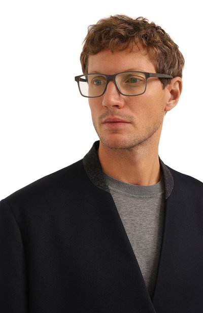Оправу с фиксированными носоупорами выполнили из ацетата. Одну из армированных дужек изделия украсили миниатюрной эмблемой бренда.