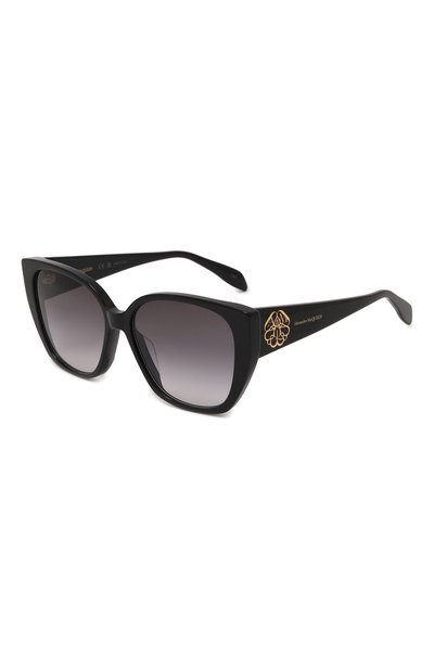 Для изготовления черной оправы больших очков в форме крыльев бабочки мастера марки использовали легкий глянцевый ацетат, который всегда остается теплым на ощупь. Принадлежность аксессуара бренду обозначили золотистым тиснением в виде эмблемы и логотипа на широких дужках. Градиентные темно-серые линзы из прочного поликарбоната блокируют 100% вредных для глаз ультрафиолетовых лучей.