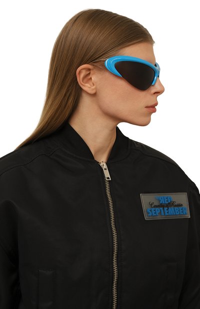 Дизайнер марки представил свою версию очков в форме cat eye: модель с увеличенными широкими рамками словно обтекает лицо. Для изготовления белых оправы и заушников использовали прочный легкий нейлон, а тонкие дужки, которые задвигаются внутрь, выполнили из серебристого металла. Однотонные серые линзы из устойчивого к царапинам полимера обеспечивают 100% защиты от ультрафиолетовых лучей даже в самый солнечный день.