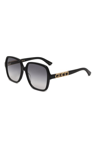 Черную оправу больших квадратных очков, вдохновленных аксессуарами из 1970-х, выполнили из легкого прочного ацетата, отполированного до глянцевого блеска. О принадлежности модели бренду говорит крупный золотистый логотип на дужках. Градиентные серые линзы обеспечивают 100% защиты от ультрафиолетовых лучей, не искажая оттенки.
