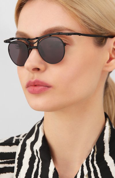Представленные эксклюзивно в ЦУМе солнцезащитные очки с градиентными плоскими линзами не пропускают 100% ультрафиолетовых лучей, отражают блики и подчеркивают контрастность предметов. Легкая оправа с изогнутыми дужками изготовлена вручную из прочной оружейной стали с антиабразивным покрытием, поэтому аксессуар прослужит долго.
