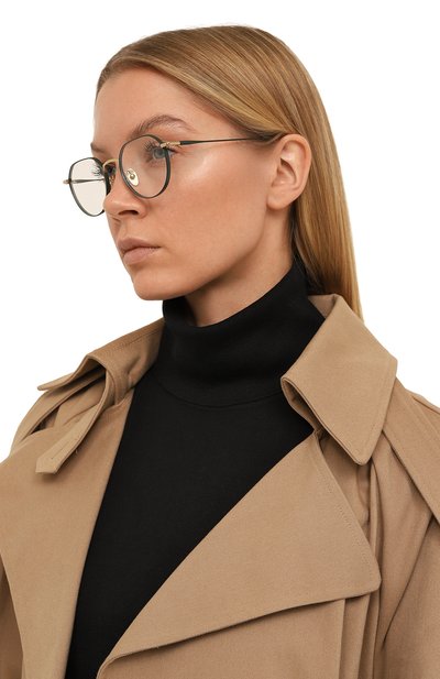 Мастера марки выполнили оправу из легкого полированного металла с покрытием золотистого цвета. Накладки из бордового ацетата на заушниках перекликаются с матовой круглой рамкой. Аксессуар будет смотреться гармонично как в женском, так и в мужском гардеробе.
