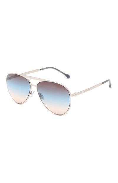 Авиаторы с двойным мостом мастера марки выполнили из легкого сплава. Узкие дужки с логотипом бренда дополнили синими заушниками, поддержав их цвет градиентными линзами. Такая модель пропускает до 40% света и надежно защищает от вредных UVA- и UVB-лучей, поэтому в ней будет комфортно солнечным днем в городе.