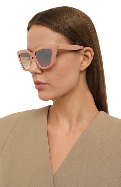Для создания темно-бежевых солнцезащитных очков, представленный эксклюзивно в ЦУМе, использовали особенно легкий и прочный ацетат Mazzucchelli, устойчивый к повреждениям. Крупную, закрывающую брови скульптурную оправу формы cat eye, в дизайне которой читается отсылка к стилю Брижит Бардо, дополнили темно-коричневыми линзами, на 100% блокирующими УФ-лучи.