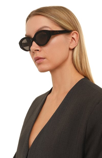 Для создания солнцезащитных очков с утрированно широкими ободами формы cat eye и фигурными дужками использовали прочный, но легкий ацетат черепаховой расцветки. Аксессуара дополнили коричневыми градиентными линзами с антибликовым покрытием и третьей степенью защиты: они полностью поглощают ультрафиолет и блики, отраженные от водной глади.