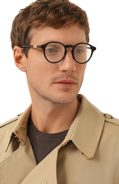 Для изготовления черной оправы мастера марки использовали комбинацию двух материалов. Отполированный до идеальной гладкости ацетат дополнили вставками из золотистой стали, которая не утяжеляет изделие и делает его визуально легче.