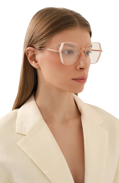 Для производства узкой оправы мастера марки использовали особенно легкую сталь. Прочность материала с покрытием цвета розового золота гарантирует, что аксессуар будет долго выглядеть как новый. Модель дополнили знаковыми асимметричными заушниками.