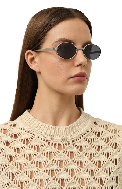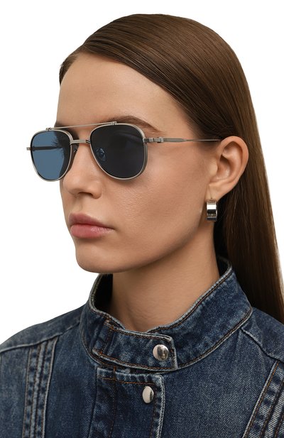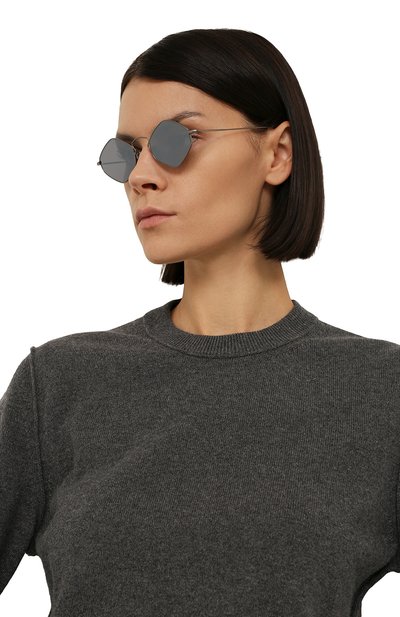 При создании этих солнцезащитных очков команда марки сделала ставку на фигурную шестиугольную оправу. Для ее производства использовали легкий сплав. Модель с фирменными асимметричными заушниками дополнили темно-синими линзами, надежно защищающими от вредных УФ-лучей.