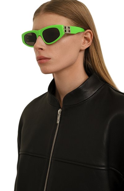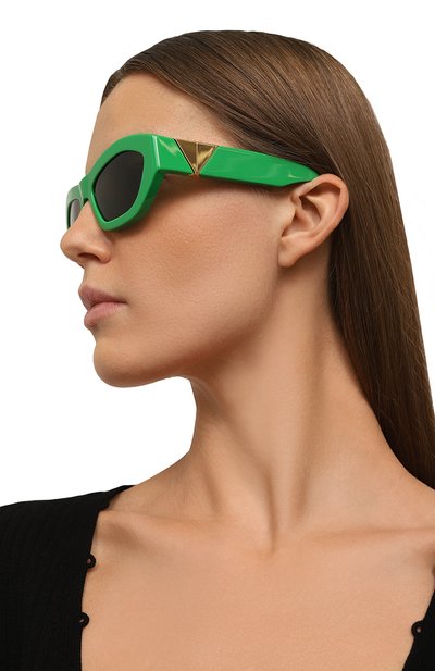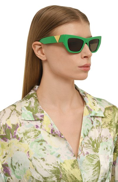 Слегка блестящий ацетат насыщенного изумрудно-зеленого цвета не позволит этим лаконичным очкам раствориться в образе. Яркость широкой оправы оттеняют рельефные золотистые полосы на геометричных дужках, а квадратные темно-серые линзы гарантируют 100-процентную защиту глаз от ультрафиолета