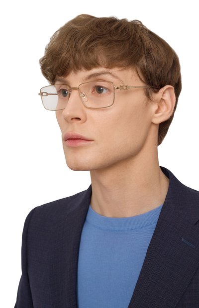 В коллекцию Santos Classic вошла безободковая оправа из металла с гальваническим покрытием драгоценным металлом. Аксессуар с подвижными носоупорами и контрастными заушниками украсили логотипом, выгравированным лазером на узких дужках.
