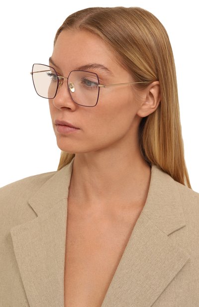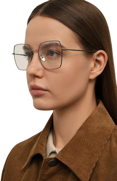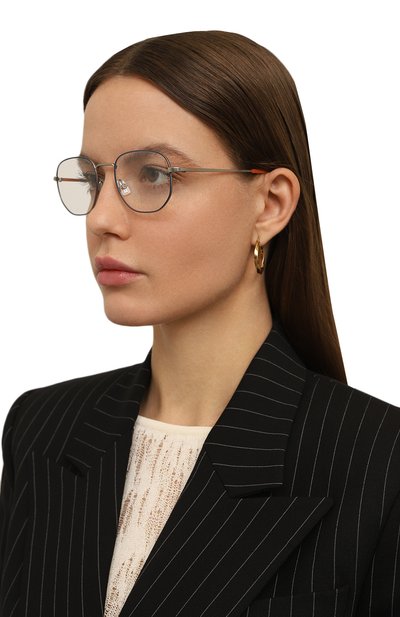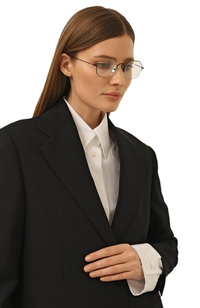 Тонкая оправа с большими квадратными рамками органично впишется в образ любой степени формальности. Для изготовления модели использовали легкий прочный металл с блестящим покрытием оттенка рутения. Чтобы аксессуар не вызывал неприятные ощущения на коже в холодную погоду, узкие дужки дополнили серыми заушниками из теплого на ощупь ацетата.