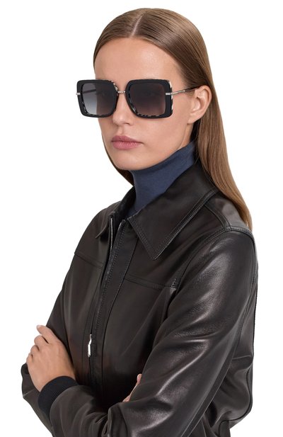 При создании этих солнцезащитных очков дизайнеры марки противопоставили массивную фигурную рамку черного цвета узким золотистым дужкам. Для изготовления аксессуара использовали легкий ацетат и прочный сплав. Дымчатые градиентные линзы на 100% защищают глаза от ультрафиолета.
