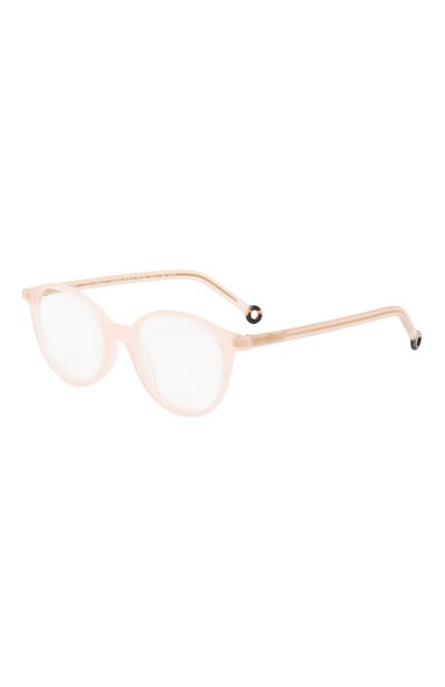 Бежевая оправа с рамкой овальной формы почти не ощущается на лице. Для ее изготовления использовали легкий, отполированный до блеска полупрозрачный ацетат, который быстро перенимает тепло кожи. На черепаховых наконечниках заушников предусмотрели круглые вырезы для крепления цепочки шатлен.