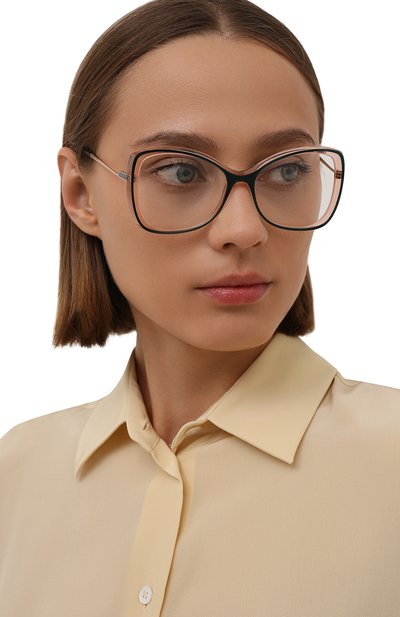 Мастера марки изготовили темно-зеленую оправу с большими квадратными рамками из легкого полированного ацетата, который не боится царапин и долго не потеряет глянцевый блеск. Из такого же полупрозрачного розового материала выполнили за ушники на узких дужках из прочного металла с покрытием цвета ягодного десерта.