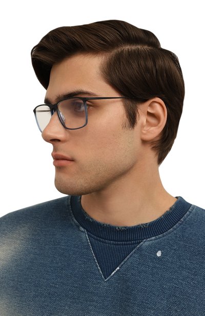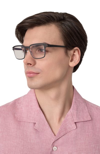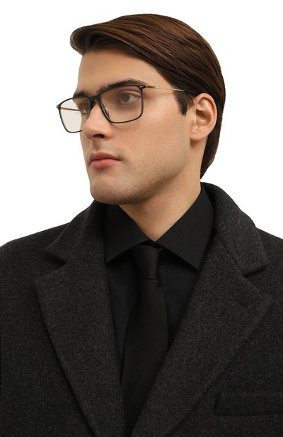 Мастера марки использовали для изготовления черной прямоугольной оправы гладкий глянцевый ацетат, хорошо сохраняющий тепло. Геометричной рамке противопоставили особенно тонкие дужки из легкого прочного титана с гальваническим покрытием, придающим аксессуару сатиновый блеск.