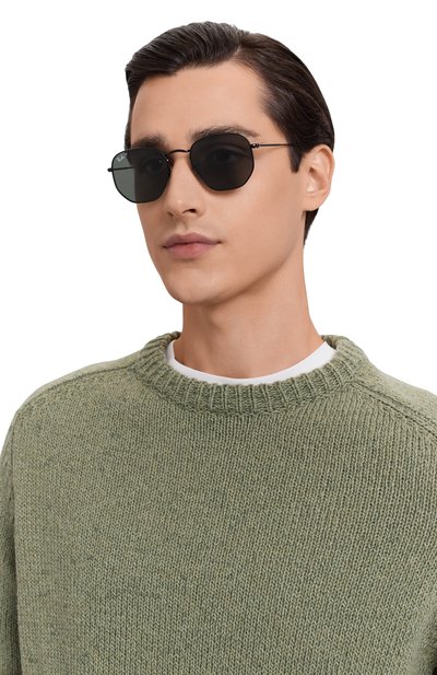 Черные солнцезащитные очки с прямоугольными ободами выполнили из легкого ювелирного сплава. Аксессуар, одинаково подходящий как мужчине, так и женщине, дополнили ацетатными заушниками, которые сохраняют комфортную температуру в любую погоду. Серые градиентные линзы на 100% защищают от UV-лучей.