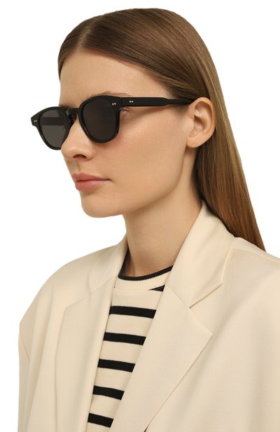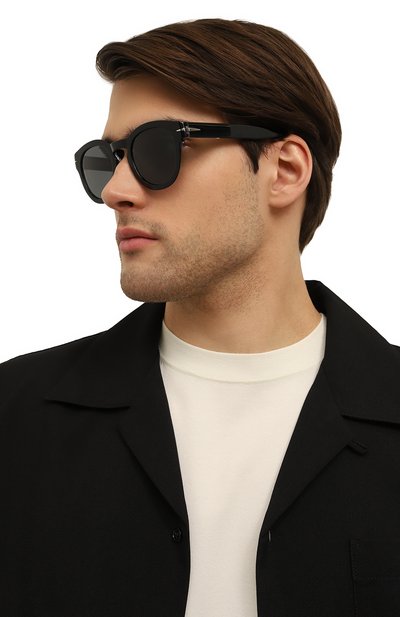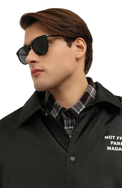Черепаховую оправу коричневых солнцезащитных очков выполнили из полированного ацетата. Для изготовления материала использовали целлюлозные волокна, поэтому аксессуар получился не только прочным, но и очень легким. Дымчатые линзы на 100% блокируют вредные ультрафиолетовые лучи.