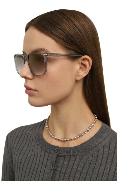 Для создания солнцезащитных очков цвета хаки выбрали гладкий ацетат Mazzucchelli, который отличается от аналогов особенной легкостью и прочностью. Дужки, укрепленные металлическими вставками, декорировали гравировкой в виде логотипа бренда. Аксессуар с нейлоновыми линзами полностью защищает от вредного излучения.