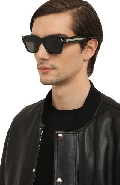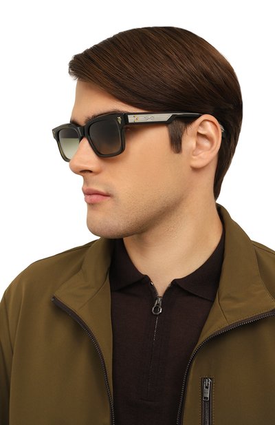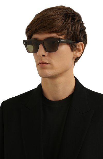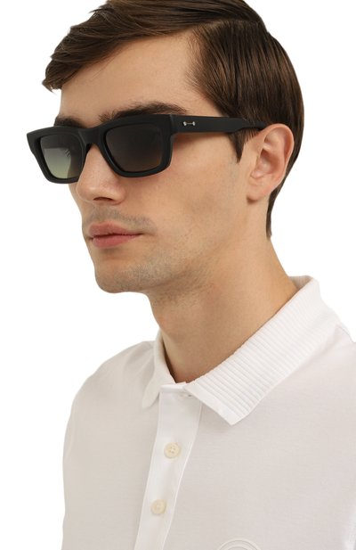Выверенный силуэт этих очков вдохновлен аксессуарами, которые носит Мартин Скорсезе. Команда марки обыграла их по-своему, чуть увеличив ширину оправы и выбрав для ее изготовления прозрачный ацетат графитового оттенка. Заданный градус строгости поддержали градиентными серыми линзами с трехслойным антибликовым покрытием и 100-процентной защитой глаз от ультрафиолета.