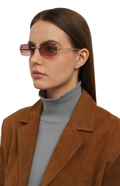 Эти квадратные безободковые очки дополнили легендарную линию 30 Montaigne, в которой собраны знаковые для Дома Dior вещи. Дужки из золотистого металла крепятся к линзам конструкцией, повторяющей и монограмму CD, и пряжку одноименной сумки. Розовые линзы полностью блокируют UVA- и UVB-лучи и обеспечивают 3-й уровень защиты — в самый раз для отдыха на воде.