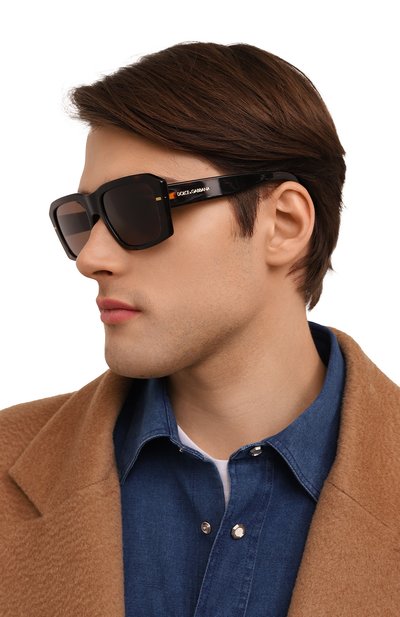 Черную оправу больших очков с каплевидными рамками изготовили из легкого прочного ацетата, который всегда остается теплым на ощупь. Основания утрированно широких дужек украсили золотистыми вставками в виде знаковой литеры T. Модель с однотонными желтыми линзами, обеспечивающими 100% защиты от ультрафиолетовых лучей, одинаково хорошо подойдет и женщинам, и мужчинам.