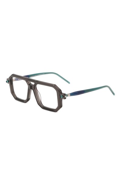 Крупная оправа с двойным мостом универсальна и органично впишется и в мужской, и в женский гардероб. Ее выполнили из ацетата Mazzucchelli трех цветов — серо-коричневые рамки дополнили дужками, на которых синий оттенок переходит в прозрачный аквамарин. Материал, известный своей легкостью и прочностью, всегда остается теплым на ощупь и почти не ощущается на коже.