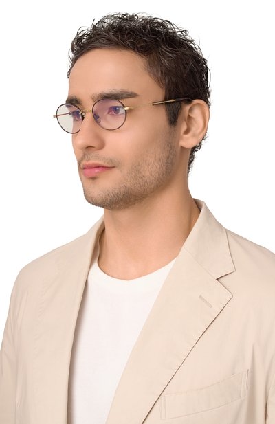 Оправу формы Butterfly выполнили из тонкого металла. Аксессуар с ацетатными заушниками и Т-образным креплением дополнили линзами с покрытием blue block.