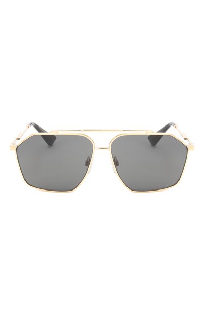 Авиаторы с геометричными темно-серыми линзами не только гарантируют защиту глаз от ультрафиолета, но и оттеняют загар. Справиться с такой задачей помогают сияющая стальная оправа и крупные детали из кипенно-белого ацетата. Одна из вставок увеличивает мост, две другие обрамляют петли на дужках, а каждую из них украшает рельефное изображе ние головы горгоны Медузы.