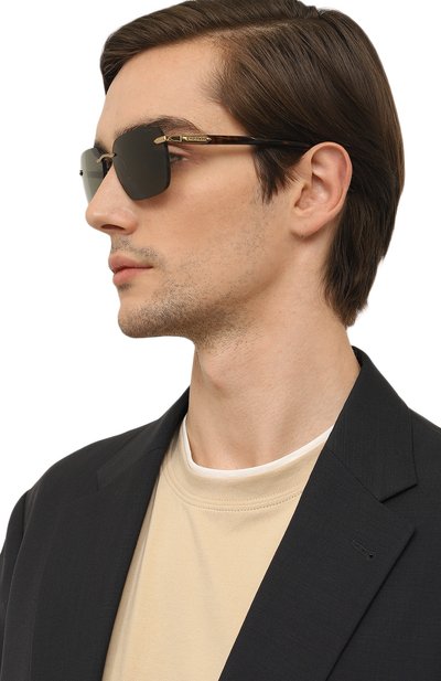 Для производства этих солнцезащитных очков использовали прочный черепаховый ацетат Mazzucchelli и легкий сплав. Материалы почти ничего не весят, поэтому аксессуар не сдавливает переносицу. Зеленые линзы с антибликовым покрытием на 100% блокируют вредное ультрафиолетовое излучение.