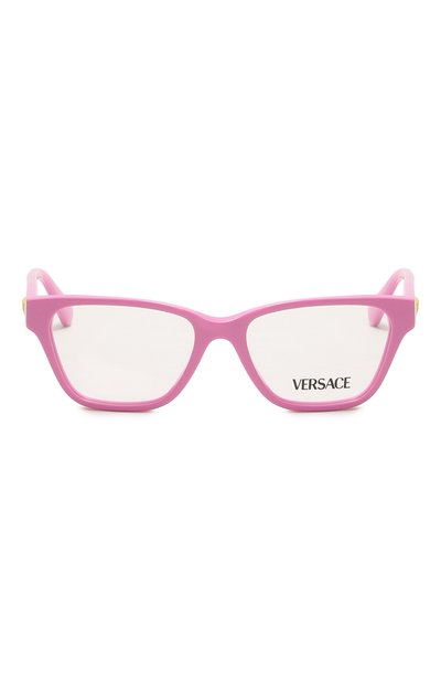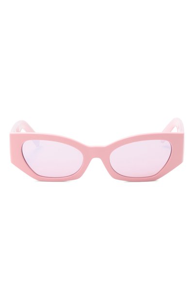 Насыщенный розовый цвет этой оправы словно позаимствовали у клубничного десерта. Для изготовления аксессуара использовали легкий прочный ацетат, который не вызывает аллергию и всегда остается теплым на ощупь. Рамки декорировали миниатюрными вставками в виде эмблемы, узкие дужки – золотистым логотипом.