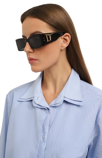 Для создания черных солнцезащитных очков использовали прочный отполированный до блеска ацетат. Материал почти ничего не весит, поэтому квадратный аксессуар комфортно садится и почти не ощущается на лице. Линзы из устойчивого к царапинам нейлона на 100% защищают от вредных УФ-лучей. Модель с золотистым крупным логотипом на широких дужках подойдет и мужчине, и женщине.