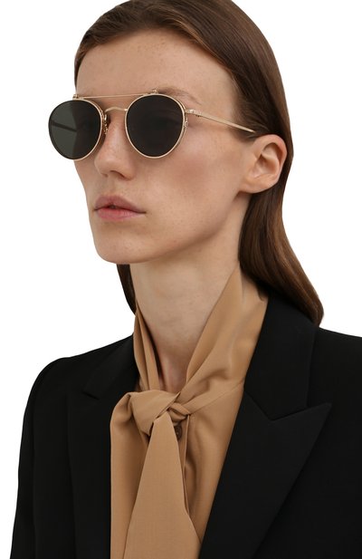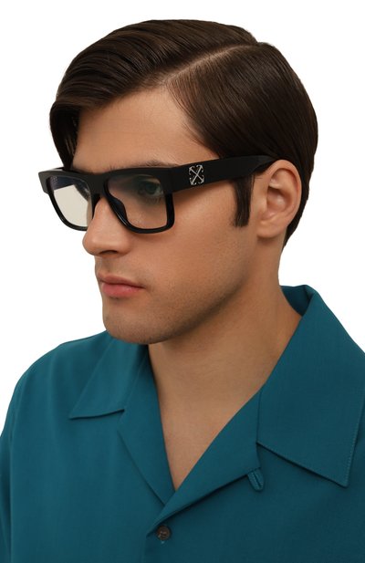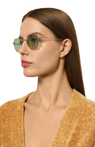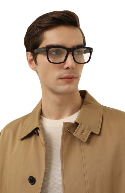 Эта оправа — аксессуар 2-в-1: в комплект входит клипон с темными солнцезащитными линзами, на 100% блокирующими ультрафиолет. Его, как и саму модель, выполнили из отполированного ацетата. О принадлежности марке говорят золотистые логотип и миниатюрное изображение кленового листа на дужках.