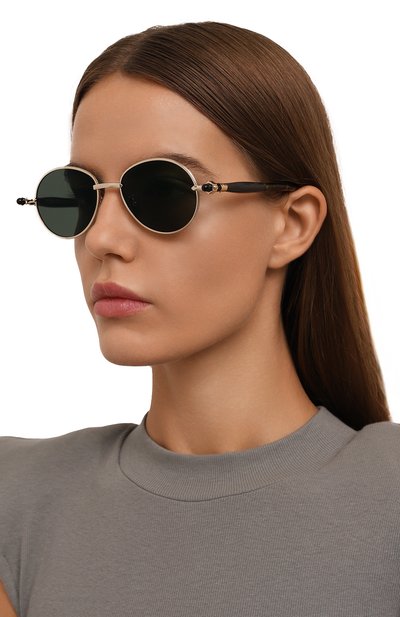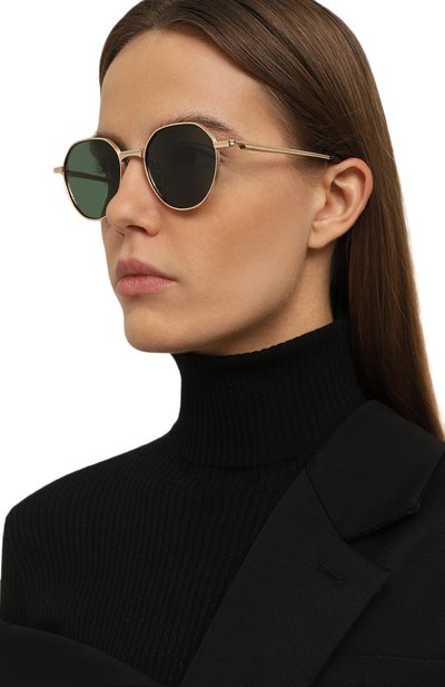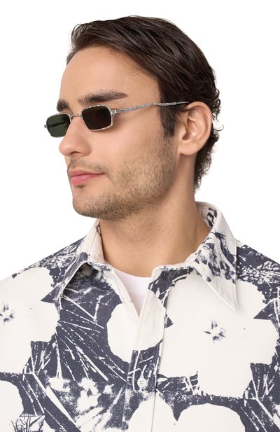 Тонкую серебристую оправу небольших круглых очков, которые подойдут и женщинам, и мужчинам, выполнили из легкой и при этом прочной нержавеющей стали. Модель дополнили прозрачными заушниками из теплого на ощупь гладкого ацетата. Узкие дужки закрепили запатентованными спиральными шарнирами, поэтому они раздвигаются под широкими углами. Однотонные зеленые линзы с антибликовым покрытием обеспечивают 100% защиты от ультрафиолетовых лучей.