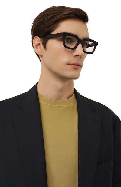 Синюю квадратную оправу выполнили из почти невесомого биоацетата mazzucchelli, отличающегося особой прочностью, поэтому она не разобьется при случайном падении. Детали аксессуара отполировали вручную до идеальной гладкости и точно подогнали друг к другу, соединив креплениями с пятью петлями, обеспечивающими плавность хода.