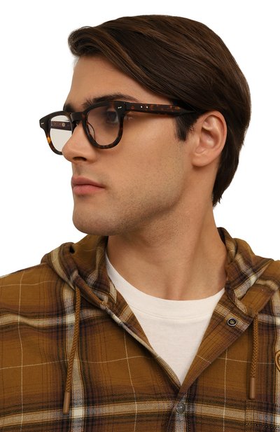 Создавая черепаховую оправу, команда марки предусмотрела все, чтобы она получилась в равной степени комфортной и практичной. Решить задачу помог ацетат mazzucchelli, который считается особенно легким и при этом прочным. Он быстро перенимает тепло кожи, поэтому аксессуар почти не ощущается на лице.