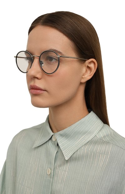 Для создания круглой оправы Keen использовали комбинацию глянцевого ацетата и японского титана. Заушники украсили брендированным пластинами. Аксессуар дополнили регулируемыми носоупорами.