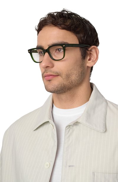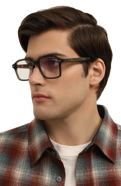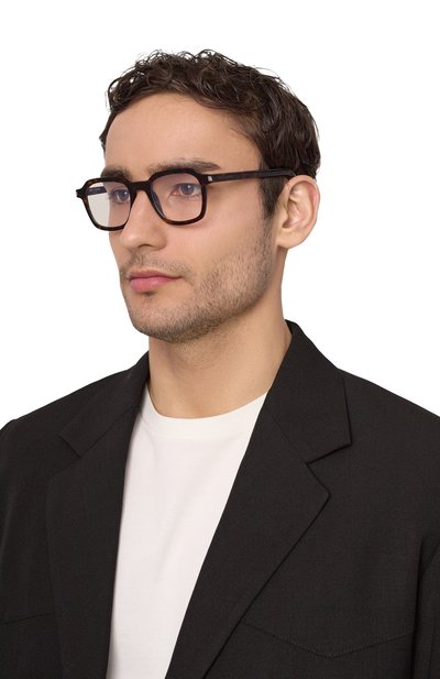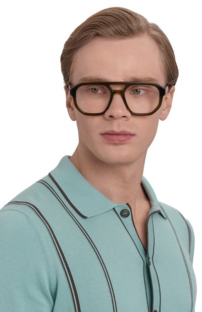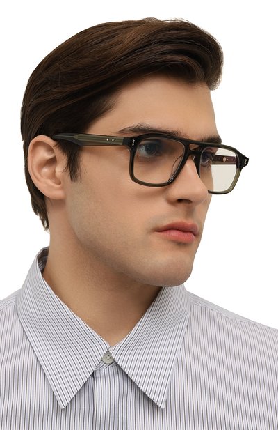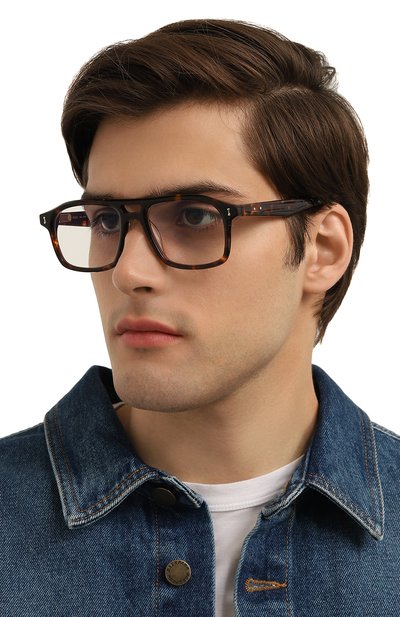 Прямоугольную оправу Palladium выполнили вручную из легкого ацетата. Заушник одной из узких дужек с флекс-шарнирами украсили фирменной заклепкой.