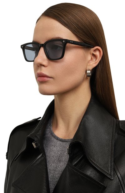 Мастера марки изготовили черные солнцезащитные очки из прочного японского ацетата, который почти ничего не весит и быстро перенимает тепло кожи. Аксессуар дополнили голубыми линзами с антибликовым покрытием, полностью блокирующими вредный ультрафиолет. 7-цилиндровые шарниры защитили от коррозии палладиевым напылением, поэтому модель прослужит долго.